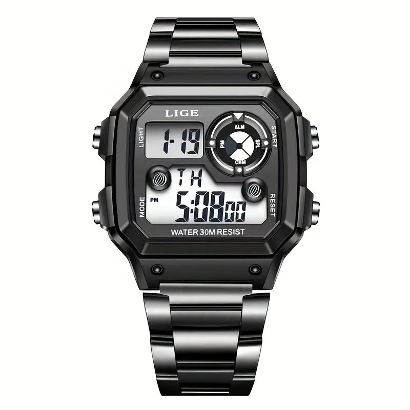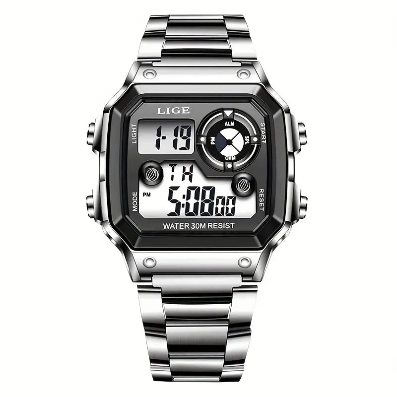 O Relógio Digital Esportivo Lige com a pulseira de aço inoxidável é leve e moderno. Mais do que apenas um acessório de pulso; é uma declaração de estilo.